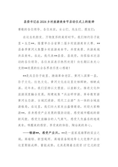 / 【七哥公文】2024年:县委书记在2024乡村旅游美食节启动仪式上的致辞+更多免费公文+VX:QiGeGongWen2024
