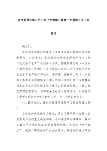 【七哥公文】2024年:在党委理论学习中心组“纪律学习教育”专题学习会上的讲话+更多免费公文+VX:QiGeGongWen2024