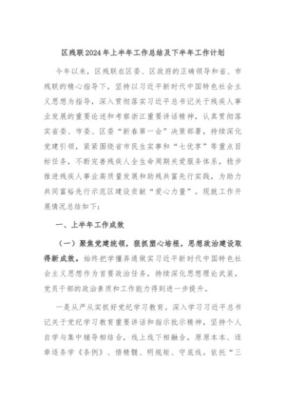 / 【七哥公文】2024年:区残联2024年上半年工作总结及下半年工作计划+更多免费公文+VX:QiGeGongWen2024