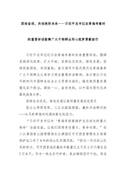 【七哥公文】2024年:团结奋进,共创美好未来——习总书记在青海考察时的重要讲话鼓舞广大干部群众同心筑梦勇毅前行+更多免费公文+VX:QiGeGongWen2024