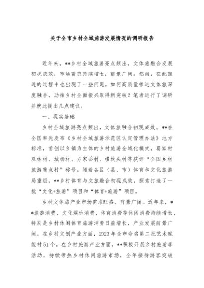 / 【七哥公文】2024年:关于全市乡村全域旅游发展情况的调研报告+更多免费公文+VX:QiGeGongWen2024