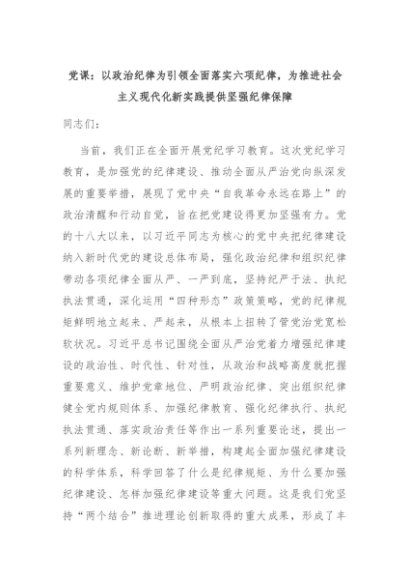 【七哥公文】2024年:党课:以政治纪律为引领全面落实六项纪律,为推进社会主义现代化新实践提供坚强纪律保障+更多免费公文+VX:QiGeGongWen2024