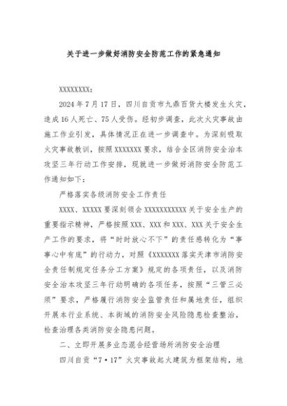 / 【七哥公文】2024年:关于进一步做好消防安全防范工作的紧急通知+更多免费公文+VX:QiGeGongWen2024