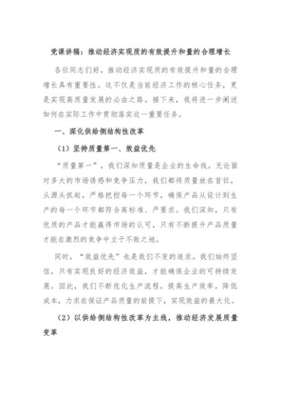 / 【七哥公文】2024年:党课讲稿:推动经济实现质的有效提升和量的合理增长+更多免费公文+VX:QiGeGongWen2024