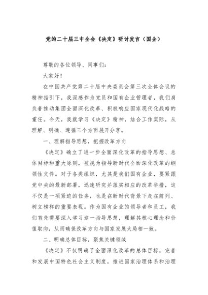 / 【七哥公文】2024年:党的二十届三中全会《决定》研讨发言(国企)+更多免费公文+VX:QiGeGongWen2024