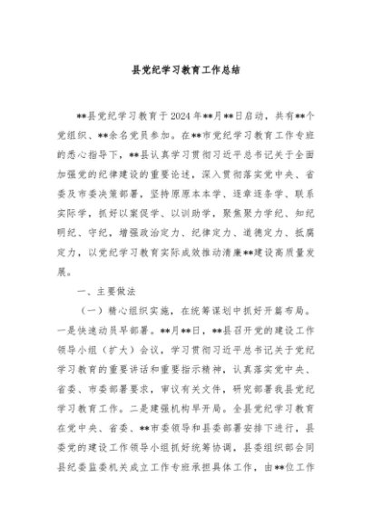 / 【七哥公文】2024年:县党纪学习教育工作总结+更多免费公文+VX:QiGeGongWen2024
