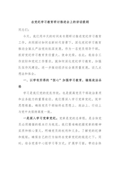 / 【七哥公文】2024年:在党纪学习教育研讨推进会上的讲话提纲+更多免费公文+VX:QiGeGongWen2024