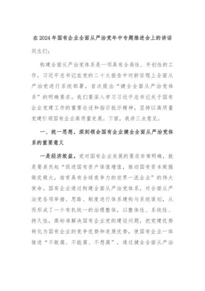 【七哥公文】2024年:在2024年国有企业全面从严治党年中专题推进会上的讲话+更多免费公文+VX:QiGeGongWen2024