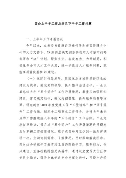 / 【七哥公文】2024年:国企上半年工作总结及下半年工作打算+更多免费公文+VX:QiGeGongWen2024