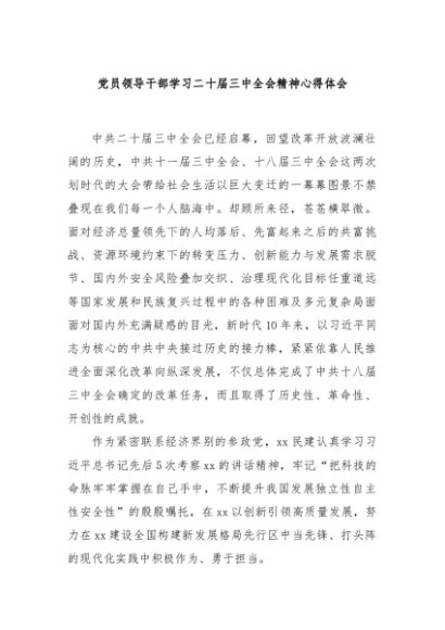 / 【七哥公文】2024年:党员领导干部学习二十届三中全会精神心得体会+更多免费公文+VX:QiGeGongWen2024