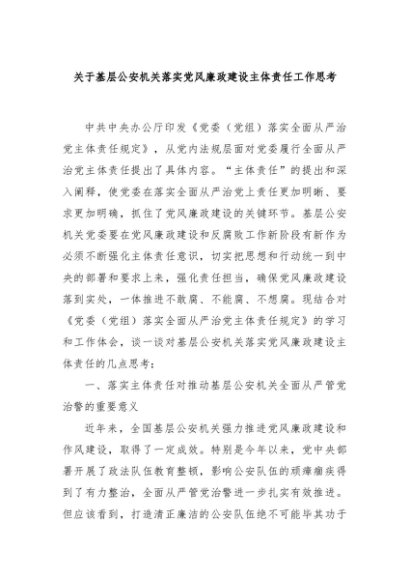/ 【七哥公文】2024年:关于基层公安机关落实党风廉政建设主体责任工作思考+更多免费公文+VX:QiGeGongWen2024