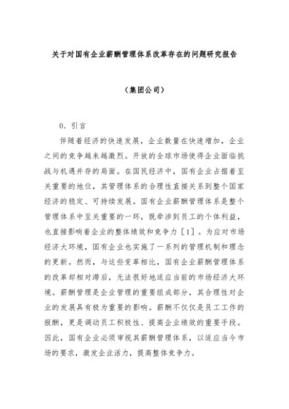 【七哥公文】2024年:关于对国有企业薪酬管理体系改革存在的问题研究报告(集团公司)+更多免费公文+VX:QiGeGongWen2024