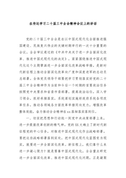 / 【七哥公文】2024年:在传达学习二十届三中全会精神会议上的讲话+更多免费公文+VX:QiGeGongWen2024