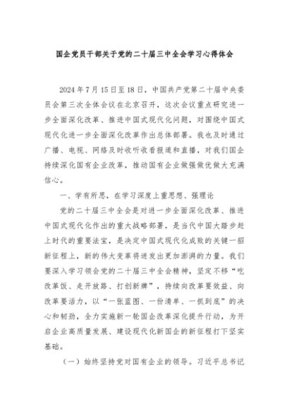 / 【七哥公文】2024年:国企党员干部关于党的二十届三中全会学习心得体会+更多免费公文+VX:QiGeGongWen2024
