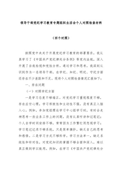 【七哥公文】2024年:领导干部党纪学习教育专题组织生活会个人对照检查材料(四个对照)+更多免费公文+VX:QiGeGongWen2024