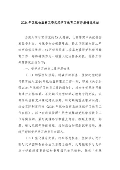 【七哥公文】2024年:2024年区纪检监察工委党纪学习教育工作开展情况总结+更多免费公文+VX:QiGeGongWen2024