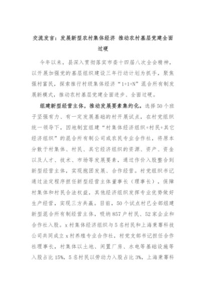 【七哥公文】2024年:交流发言:发展新型农村集体经济 推动农村基层党建全面过硬+更多免费公文+VX:QiGeGongWen2024