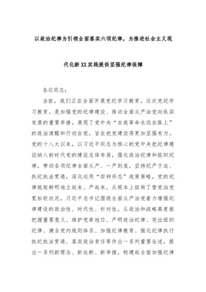 【七哥公文】2024年:以政治纪律为引领全面落实六项纪律,为推进社会主义现代化新XX实践提供坚强纪律保障+更多免费公文+VX:QiGeGongWen2024