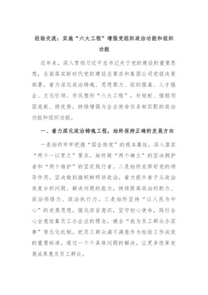 【七哥公文】2024年:经验交流:实施“六大工程”增强党组织政治功能和组织功能+更多免费公文+VX:QiGeGongWen2024