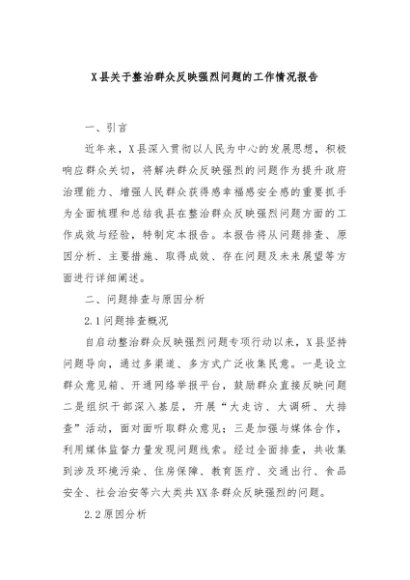 / 【七哥公文】2024年:X县关于整治群众反映强烈问题的工作情况报告+更多免费公文+VX:QiGeGongWen2024