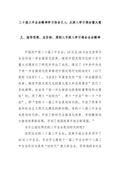 【七哥公文】2024年:二十届三中全会精神学习体会之1:从深入学习领会重大意义、指导思想、总目标、原则入手深入学习领会全会精神+更多免费公文+VX:QiGeGongWen2024