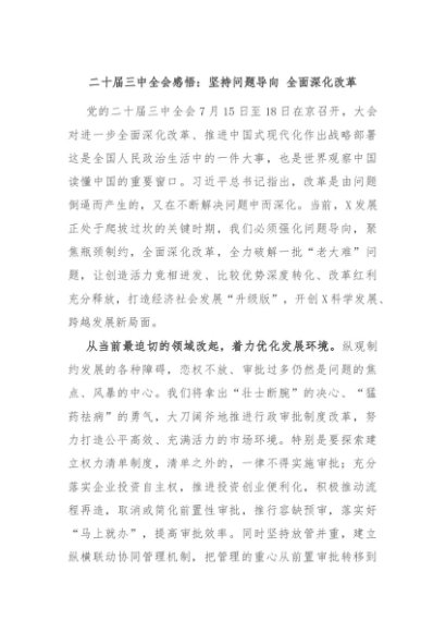 / 【七哥公文】2024年:二十届三中全会感悟:坚持问题导向 全面深化改革+更多免费公文+VX:QiGeGongWen2024