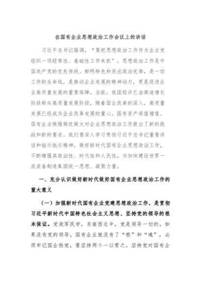 / 【七哥公文】2024年:在国有企业思想政治工作会议上的讲话+更多免费公文+VX:QiGeGongWen2024