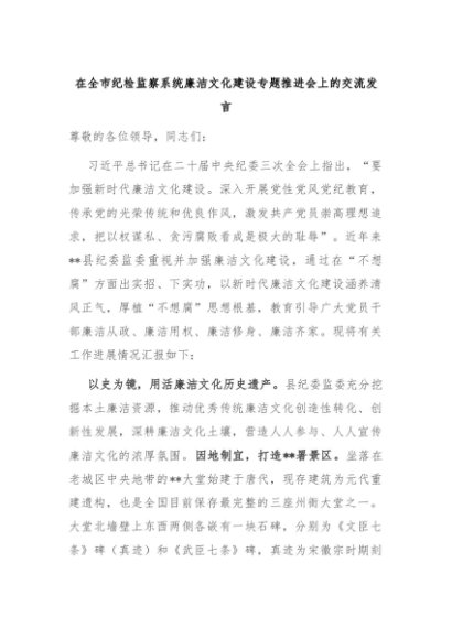 【七哥公文】2024年:在全市纪检监察系统廉洁文化建设专题推进会上的交流发言+更多免费公文+VX:QiGeGongWen2024