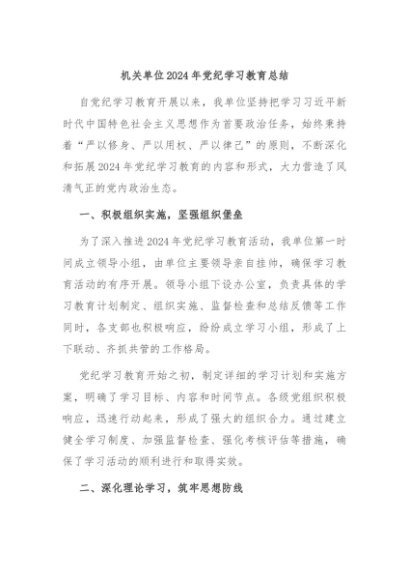 / 【七哥公文】2024年:机关单位2024年党纪学习教育总结+更多免费公文+VX:QiGeGongWen2024