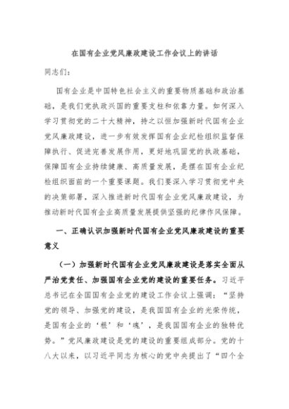 / 【七哥公文】2024年:在国有企业党风廉政建设工作会议上的讲话+更多免费公文+VX:QiGeGongWen2024
