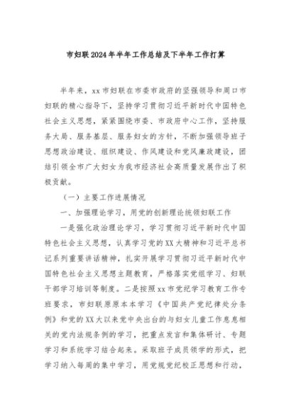 / 【七哥公文】2024年:市妇联2024年半年工作总结及下半年工作打算+更多免费公文+VX:QiGeGongWen2024