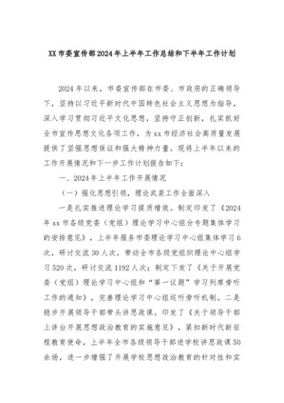 【七哥公文】2024年:XX市委宣传部2024年上半年工作总结和下半年工作计划+更多免费公文+VX:QiGeGongWen2024