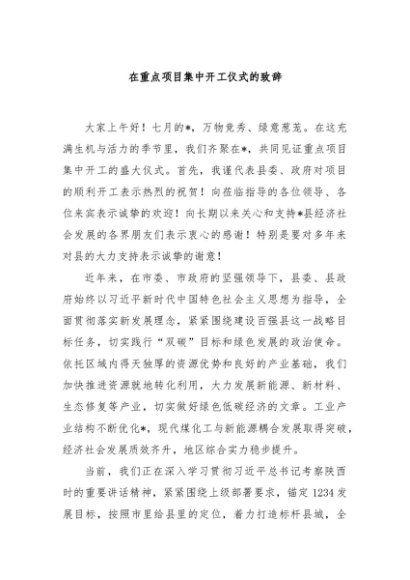 / 【七哥公文】2024年:在重点项目集中开工仪式的致辞+更多免费公文+VX:QiGeGongWen2024