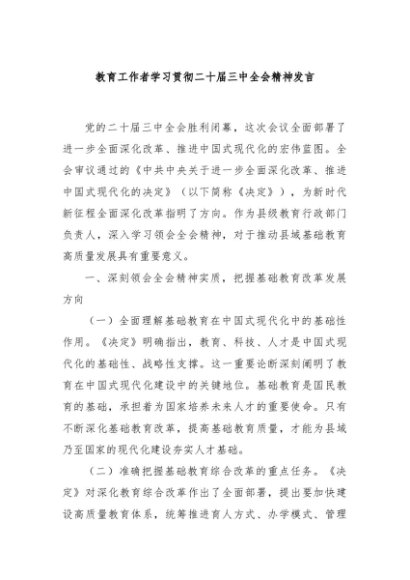 / 【七哥公文】2024年:教育工作者学习贯彻二十届三中全会精神发言+更多免费公文+VX:QiGeGongWen2024