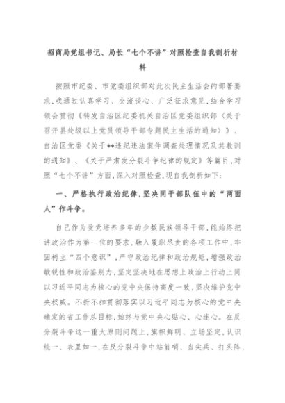 【七哥公文】2024年:招商局党组书记、局长“七个不讲”对照检查自我剖析材料+更多免费公文+VX:QiGeGongWen2024