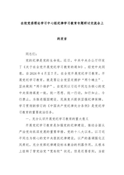 【七哥公文】2024年:在校党委理论学习中心组纪律学习教育专题研讨交流会上的发言+更多免费公文+VX:QiGeGongWen2024