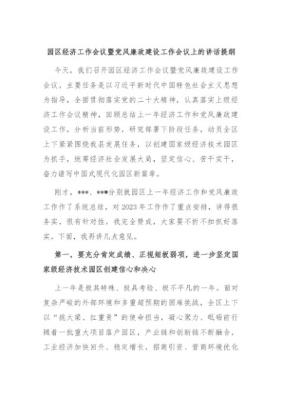 【七哥公文】2024年:园区经济工作会议暨党风廉政建设工作会议上的讲话提纲+更多免费公文+VX:QiGeGongWen2024