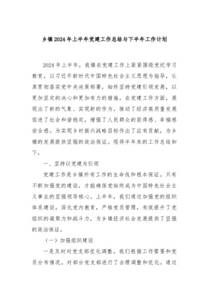 / 【七哥公文】2024年:乡镇2024年上半年党建工作总结与下半年工作计划+更多免费公文+VX:QiGeGongWen2024