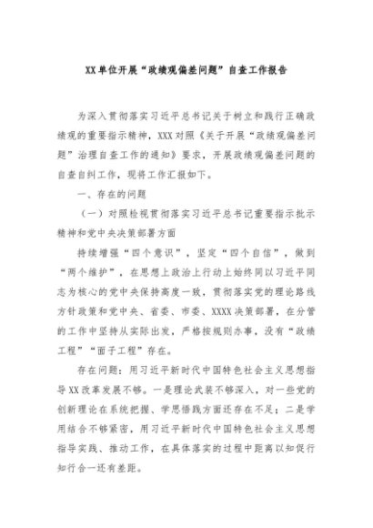 / 【七哥公文】2024年:XX单位开展“政绩观偏差问题”自查工作报告+更多免费公文+VX:QiGeGongWen2024