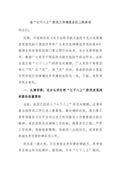 / 【七哥公文】2024年:在“七下八上”防汛工作调度会议上的讲话+更多免费公文+VX:QiGeGongWen2024