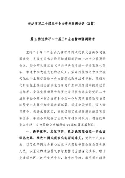 【七哥公文】2024年:(2篇)传达学习二十届三中全会精神强调讲话+更多免费公文+VX:QiGeGongWen2024