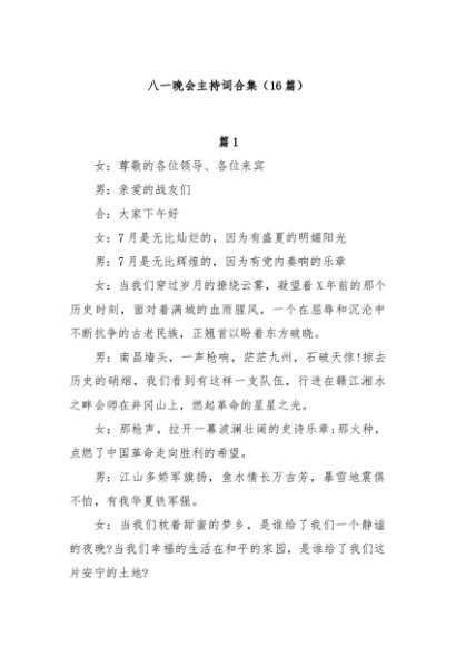 / 【七哥公文】2024年:(16篇)八一晚会主持词合集 (1)+更多免费公文+VX:QiGeGongWen2024