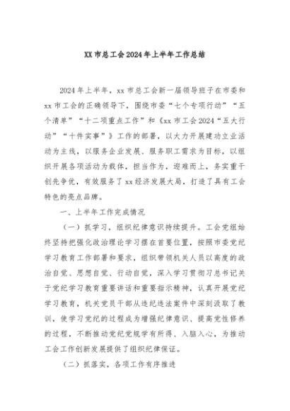 / 【七哥公文】2024年:XX市总工会2024年上半年工作总结+更多免费公文+VX:QiGeGongWen2024