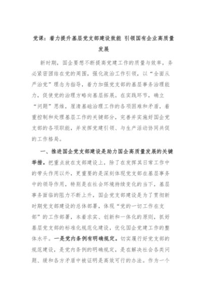 【七哥公文】2024年:党课:着力提升基层党支部建设效能 引领国有企业高质量发展+更多免费公文+VX:QiGeGongWen2024