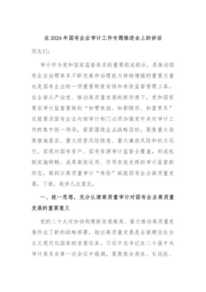 / 【七哥公文】2024年:在2024年国有企业审计工作专题推进会上的讲话+更多免费公文+VX:QiGeGongWen2024