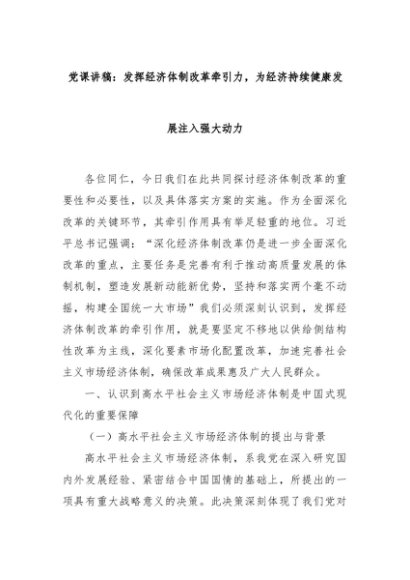 【七哥公文】2024年:党课讲稿:发挥经济体制改革牵引力,为经济持续健康发展注入强大动力+更多免费公文+VX:QiGeGongWen2024