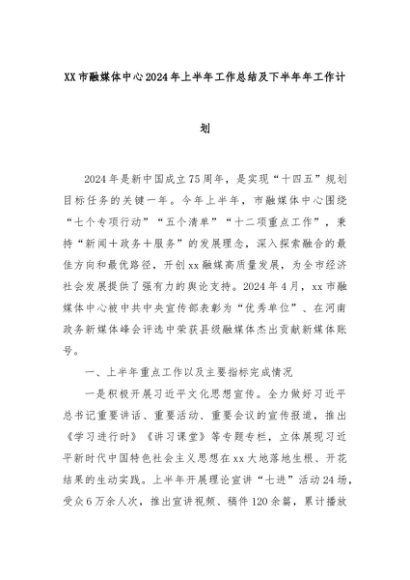 【七哥公文】2024年:XX市融媒体中心2024年上半年工作总结及下半年年工作计划+更多免费公文+VX:QiGeGongWen2024
