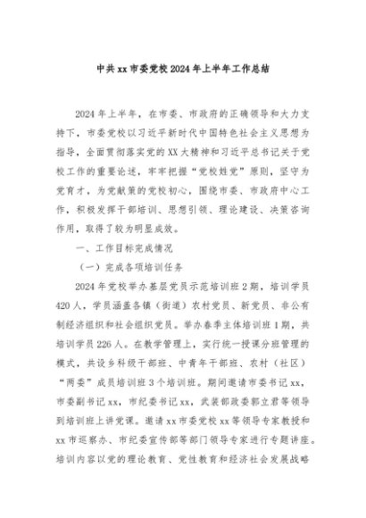 / 【七哥公文】2024年:中共xx市委党校2024年上半年工作总结+更多免费公文+VX:QiGeGongWen2024