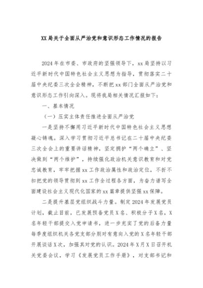 / 【七哥公文】2024年:XX局关于全面从严治党和意识形态工作情况的报告+更多免费公文+VX:QiGeGongWen2024