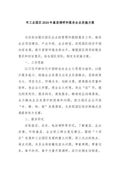 / 【七哥公文】2024年:市工业园区2024年基层调研和服务企业实施方案+更多免费公文+VX:QiGeGongWen2024